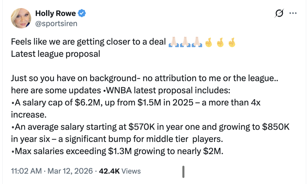 Very few leaks have come out about the substance of the half-dozen-plus offers exchanged between the league and the WNBPA this week, but Rowe had details on the latest salary figures being discussed at meetings in New York City.